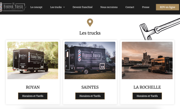 Barbier et propriétaire d’une franchise de barber truck, la société LB Barber Truck nous a contacté pour la réalisation d’un site Internet. Le but était de présenter la marque et d’y lier les sites annexes représentant chacun des trucks.