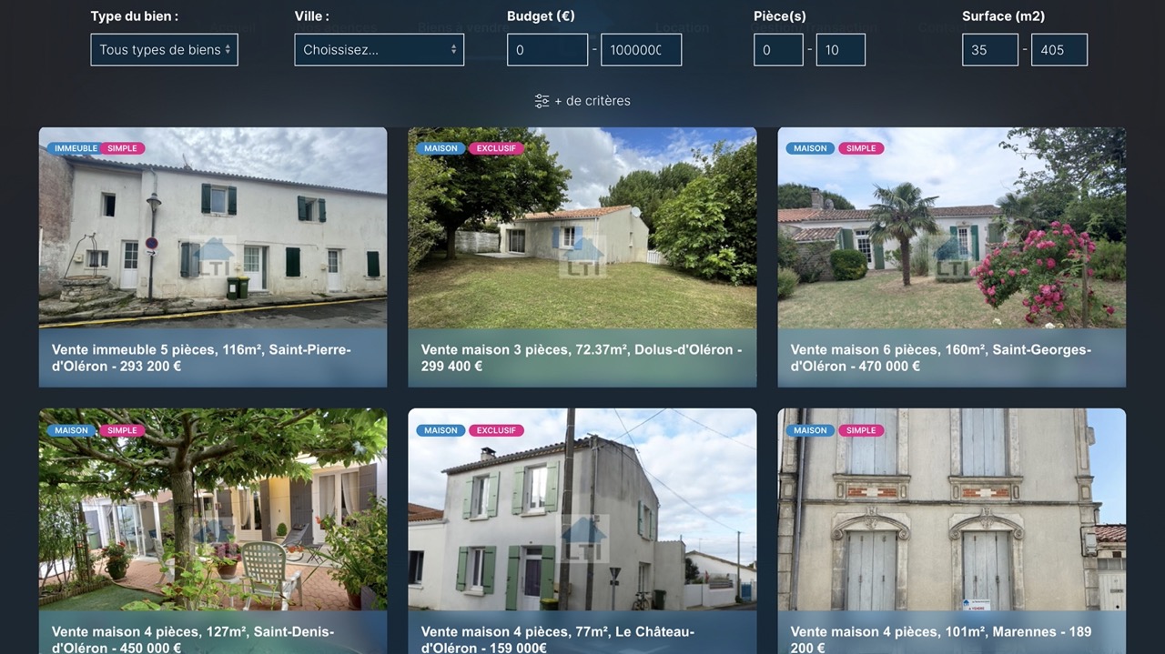 CRÉATION D’UN SITE INTERNET « CATALOGUE IMMOBILIER » POUR LE TERME IMMOBILIER À MARENNES-OLÉRON..