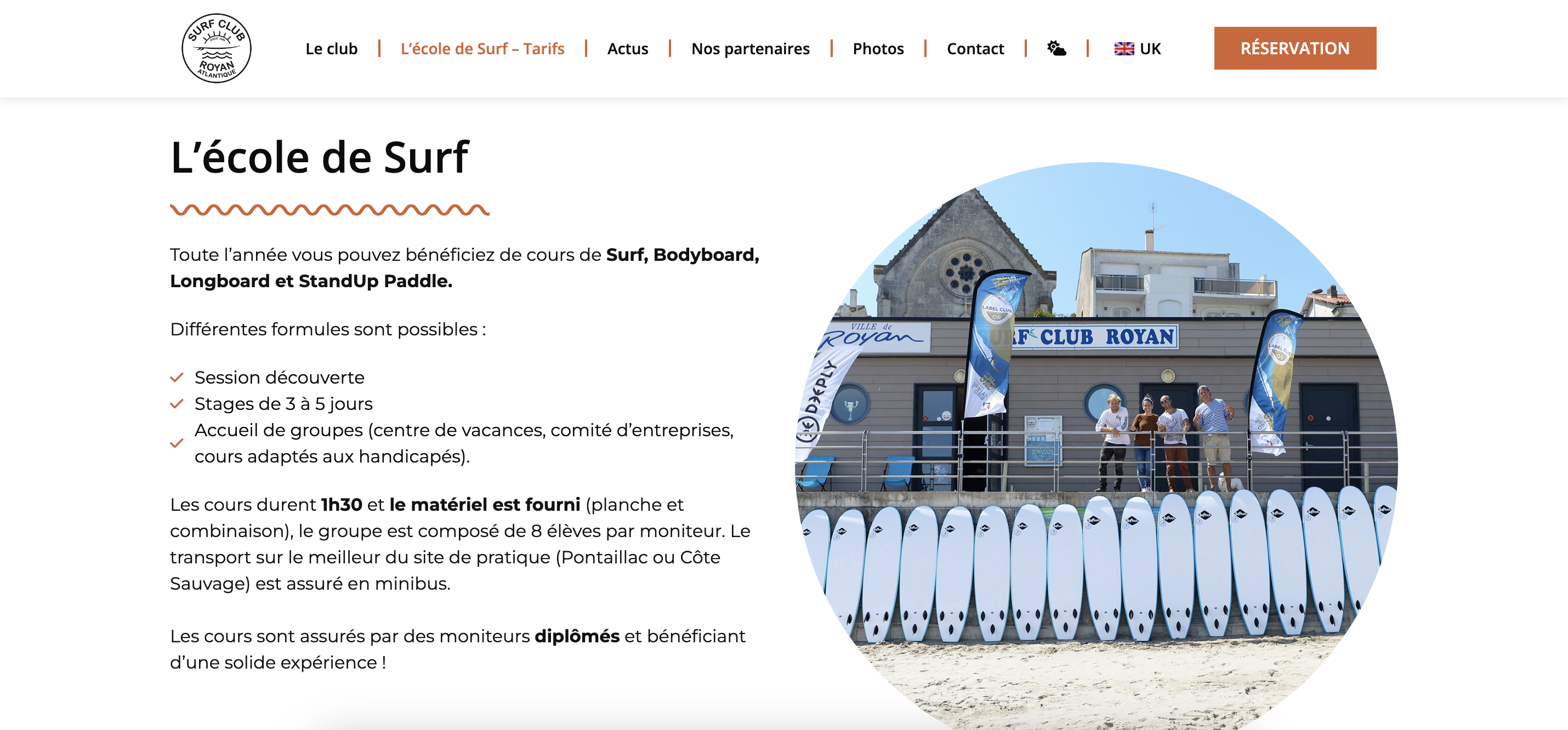 L’école de surf de royan nous a contacté pour la réalisation d’un site Internet.