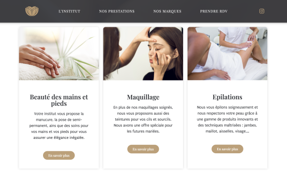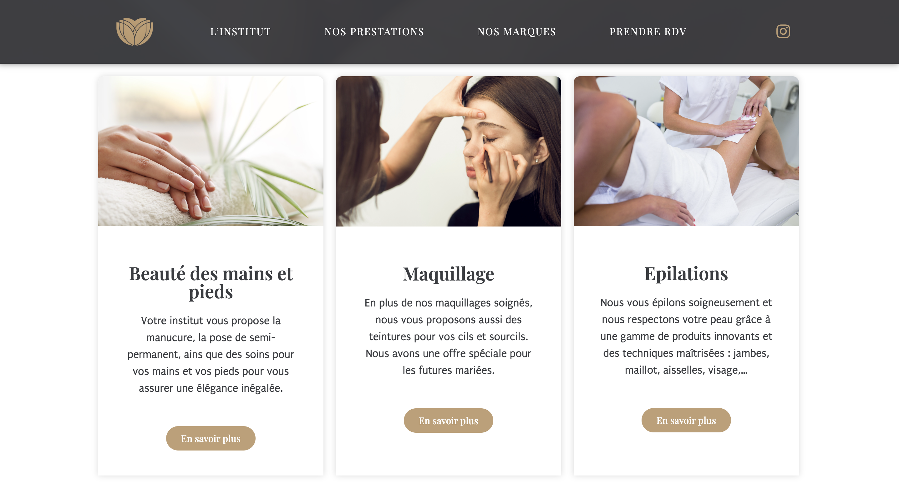 Création d’une identité graphique (logo + maquettes carterie) et d’un site Internet Vitrine pour l’institut de beauté situé à Royan. Un shooting photo est également prévu dans un second temps pour communiquer pendant les fêtes de Noël.