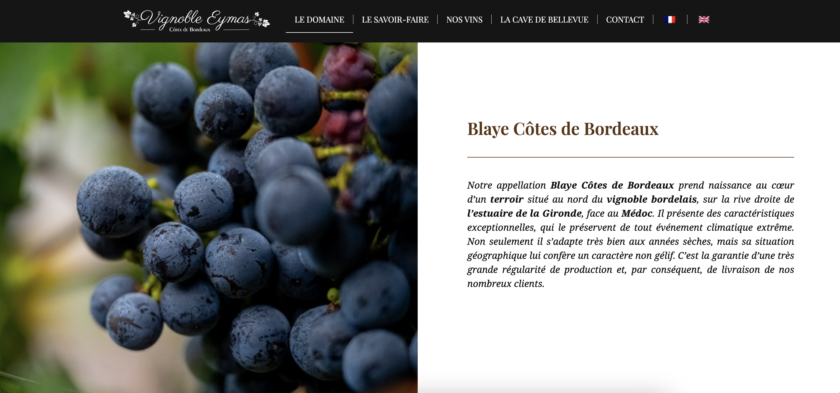 CRÉATION D’UN SITE INTERNET POUR  VIGNOBLE EYMAS À SAINT-CIERS-SUR-Gironde.