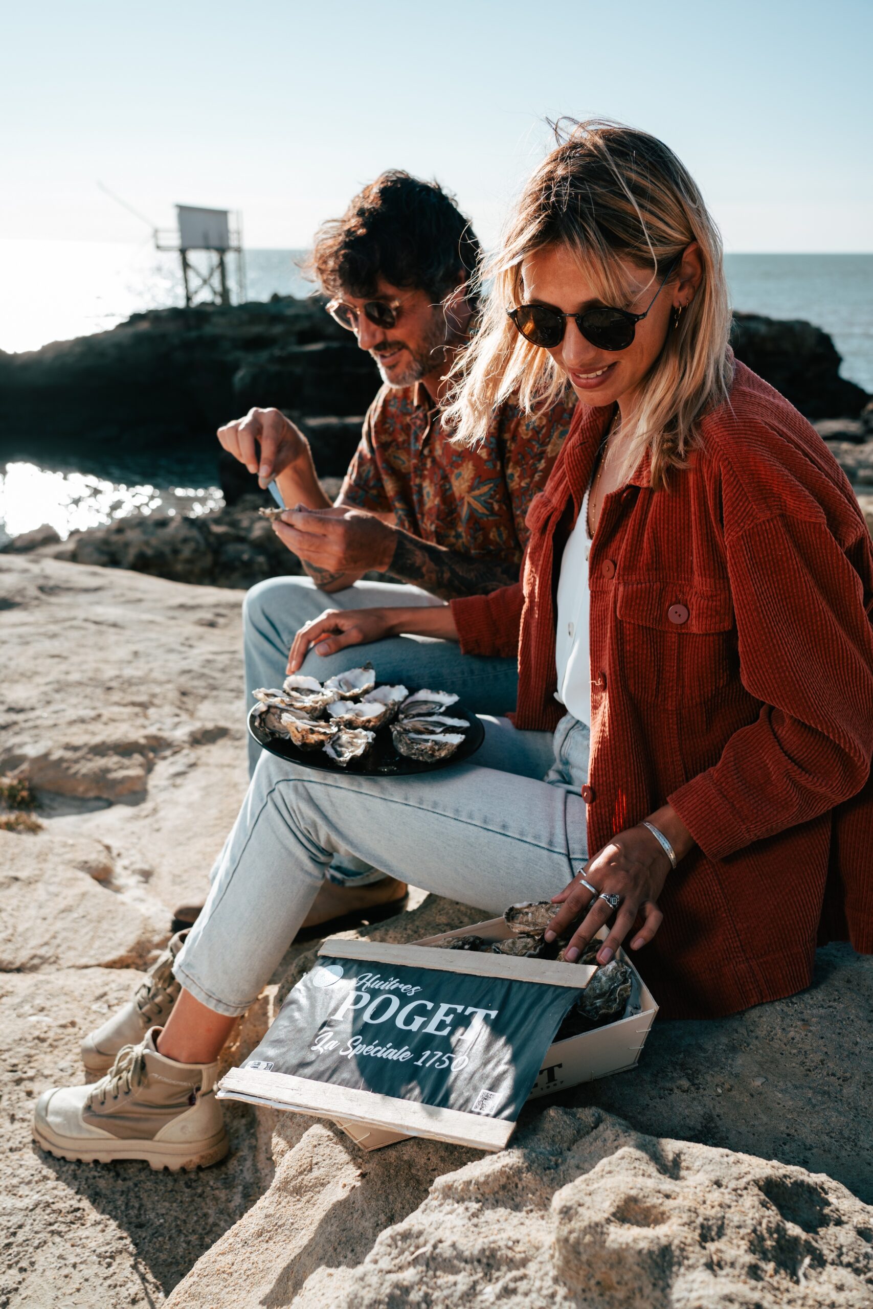 Nous avons opté pour une approche sophistiquée avec des packshots élégants et des mises en scène raffinées qui mettent en avant non seulement la qualité des huîtres Poget mais également leur luxe inhérent. Chaque image a été méticuleusement planifiée pour refléter le statut premium des huîtres, en utilisant des arrière-plans épurés et des accessoires qui évoquent un environnement naturel et pur, faisant écho à l’origine maritime des huîtres.