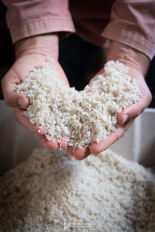 Le lieu de prise de vue s’est fait sur site, dans le cadre le plus révélateur de l’activité du producteur. Un système de flash portatif a été utilisé pour créer un mini studio.